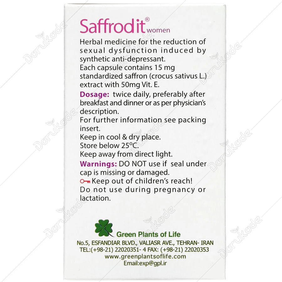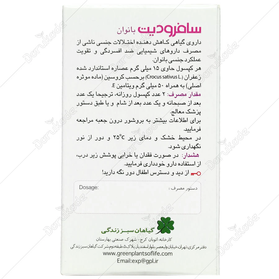 سافرودیت، حاوی عصاره استاندارد شده زعفران و ویتامین E