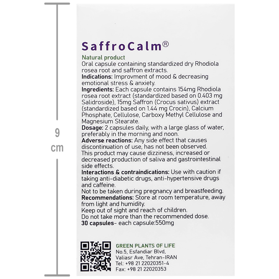 هر کپسول حاوی 154 میلی گرم عصاره ریشه گیاه رودیولارزا (استاندارد شده بر اساس 0.403 میلی گرم سالیدروزاید)، 15 میلی گرم عصاره زعفران (استاندارد شده بر اساس 1.44 میلی گرم کروسین)، کلسیم فسفات، سلولز، کربوکسی متیل سلولز و منیزیم استئارات